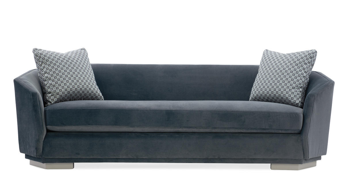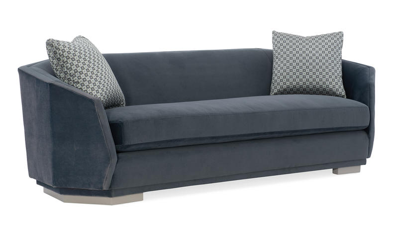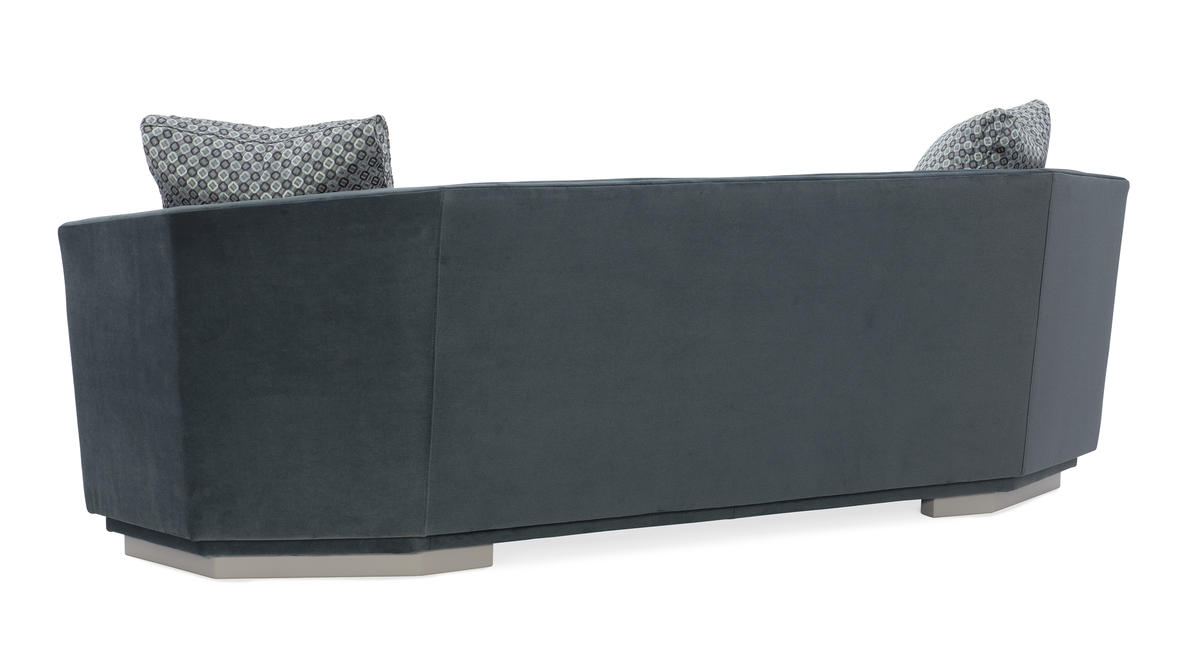 Intriguing from every angle, this statement-making sofa offers the look of contemporary design yet gives you the feeling of being cradled within its arms. Its octagonal shape draws inspiration from the facets of a diamond as well as modern architecture. It sits elevated upon a wood plinth base, replicating the octagonal shape above, for an aesthetic of true originality. Enclosed within the sanctuary of this sumptuously upholstered piece you can finally relax in style.